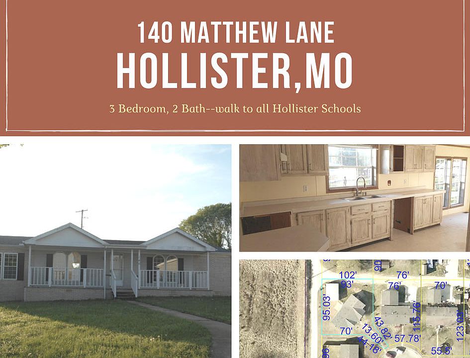 This 1492 square foot mobile / manufactured home has 3 bedrooms and 2.0 bathrooms. This home is located at 140 Matthew Ln, Hollister, MO 65672.