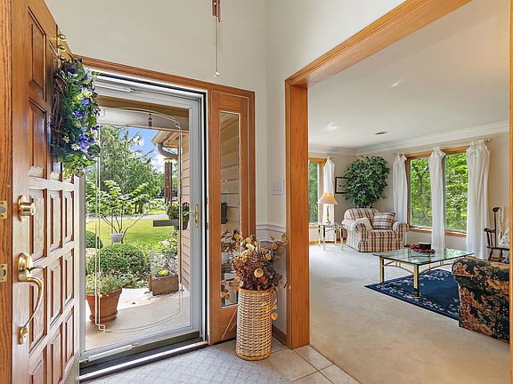 Nestled next to Veterans Acres and Sterns Woods, this stunning custom home sits on a private, wooded .63-acre lot with direct access to scenic trails. Built by the original owner, this impeccably maintained residence boasts over 4,500 sq. ft. of elegant living space, plus an additional 2,700 sq. ft. in the expansive walk-out lower level. The heart of the home is a spacious chef's kitchen that opens to a dramatic two-story family room, perfect for both everyday living and entertaining. Enjoy formal dinners in the elegant dining room, relax in the inviting living room, and benefit from the convenient main-level laundry. The generously sized first-floor master suite offers privacy and comfort, complemented by two additional bedrooms - one currently serving as a versatile study/sewing room. Step from the family room onto a massive 39' x 18' screened porch complete with skylights and a gas grill hookup, ideal for indoor-outdoor living. Upstairs, discover a bright loft area, two additional bedrooms, two full bathrooms, and a versatile bonus room - currently an office - with a private staircase leading to the garage, perfect for an in-law suite or guest quarters. The lower level is an entertainer's dream with a large recreation room featuring a bar, comfortable seating areas, a full bath, and three spacious storage rooms, one easily converted to a bedroom. French doors open to a secluded brick paver patio, creating a peaceful retreat. Additional access to the garage adds convenience. Enjoy the luxury of radiant floor heating throughout all three levels, alongside central air conditioning for year-round comfort. This home offers far more space than meets the eye and must be seen to be fully appreciated. Ideally located just blocks from downtown Crystal Lake and the Metra, this property blends privacy with unparalleled convenience.