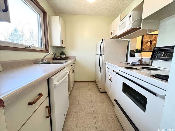 Welcome to this well maintained, beautifully treed complex in Somerset Village in popular Silverwood Heights. It's conveniently located near schools, parks, and offers bus access right outside your door to downtown, hospitals, or the University of Saskatchewan. With shopping and the river within walking distance and backing onto W.J.L. Harvey North Park, this unit features 3 bedrooms, 2 bathrooms, and newer laminate flooring in the living room. It includes updated bathroom light fixtures, modern toilets and sinks, a high-efficiency furnace, and a water heater that's approximately 15 years old. The large windows bathe the space in natural light, and the rear exit leads to a private deck and fully fenced yard. The basement is unfinished, presenting a blank canvas for future development. This unit awaits a new owner ready to infuse it with their personal touch and make it their own. Call today for your private showing.