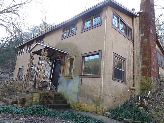 Location Location Location! Walk to all that Main Street Eureka Springs has to offer. Charming historic home nestled in beautiful Mill Hollow. Built on two levels, the kitchen, dining and great room are on the first floor, with three bedrooms, one bath, and utility room on second floor. Second floor features walk-out to back outdoor living area. Outdoor stairs provide access to attic space. Quaint small cold storage room off dining area. With lots of windows, a fireplace and exposed stone wall in great room, this home will capture your heart and imagination.