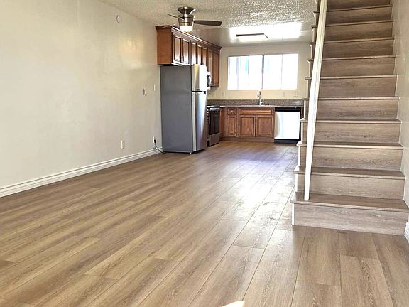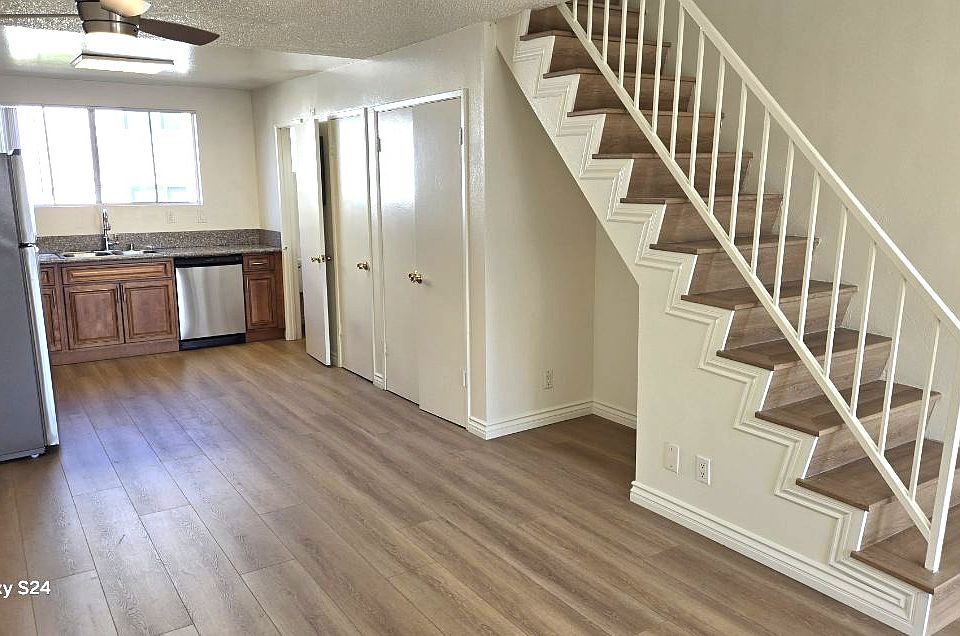 Two-story townhouse style. The extensive remodeling has just been completed. Brand new flooring throughout the unit, brand new appliances, and much more. The downstairs has the living, dining, kitchen, and half bath. The upstairs has two bedrooms and one full bath. The southside bedroom has a balcony with a city view. Two assigned parking spaces. Quiet street. Close to the shops and Metro station. Good FW access. No pet is allowed.
