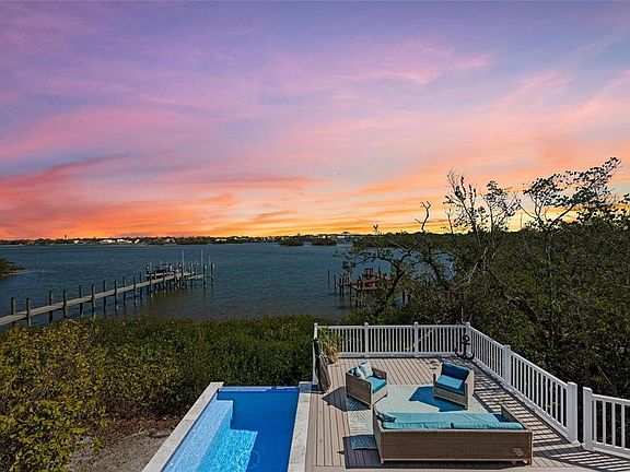 LIVE THE ULTIMATE COASTAL LIFESTYLE on the coveted Casey Key barrier island at this vibrant 3-bed, 3.5-bath waterfront retreat, perfectly positioned along the Intracoastal Waterway with dazzling, front-row views. Designed for unforgettable days on the water, this home features a stunning Aqua-Tech infinity edge heated pool with therapy jet ledge, where you can unwind while watching boats, jet skis, kayaks, and the occasional dolphin glide by. Set on a generous .49-acre lot with lush tropical landscaping, fresh exterior lighting, brand-new shell driveway, and beautifully re-stained cedar siding (2025), the home blends island charm with modern updates. A shared, deeded boat slip offers quick access to the Intracoastal—perfect for sunset cruises, fishing trips, or lunch runs to nearby waterfront restaurants. Step inside to soaring ceilings and sun-filled living spaces anchored by gorgeous engineered hardwood floors. The open-concept great room flows effortlessly to an expansive composite deck designed for entertaining, complete with multiple lounge zones, a grilling area, and panoramic water views that make every gathering feel like a vacation. The chef's kitchen shines with sleek cabinetry, premium stainless appliances, a dramatic stone island, and a glass tile backsplash. A stylish dry bar with leaded glass barn door adds an extra touch of coastal chic. All three bedrooms with their own private ensuites, while the loft provides flexible space for an office, den, or artist’s perch overlooking the main living area. The metal tile roof provides long-term durability, and the optional HOA (only $400) adds neighborhood security without CDD fees. Enjoy peaceful island living with the convenience of Blue Lagoon Restaurant, Mariner Jack Marina, boat and jet ski rentals, fishing spots, and Sarasota’s vibrant dining and cultural venues just minutes away. Private aviation is close by, making travel effortless. THE SELLER IS HIGHLY MOTIVATED AND OPEN TO SERIOUS OFFERS, making this an exceptional opportunity for buyers looking to secure a foothold on Casey Key. Come experience waterfront living at its most energizing and serene way on one of Florida’s most treasured islands. This is Casey Key—where every day feels like a getaway.