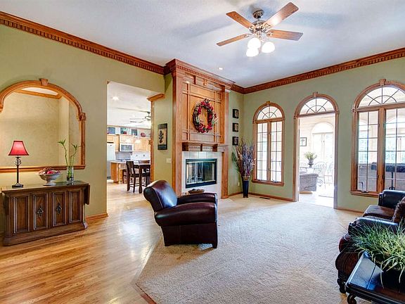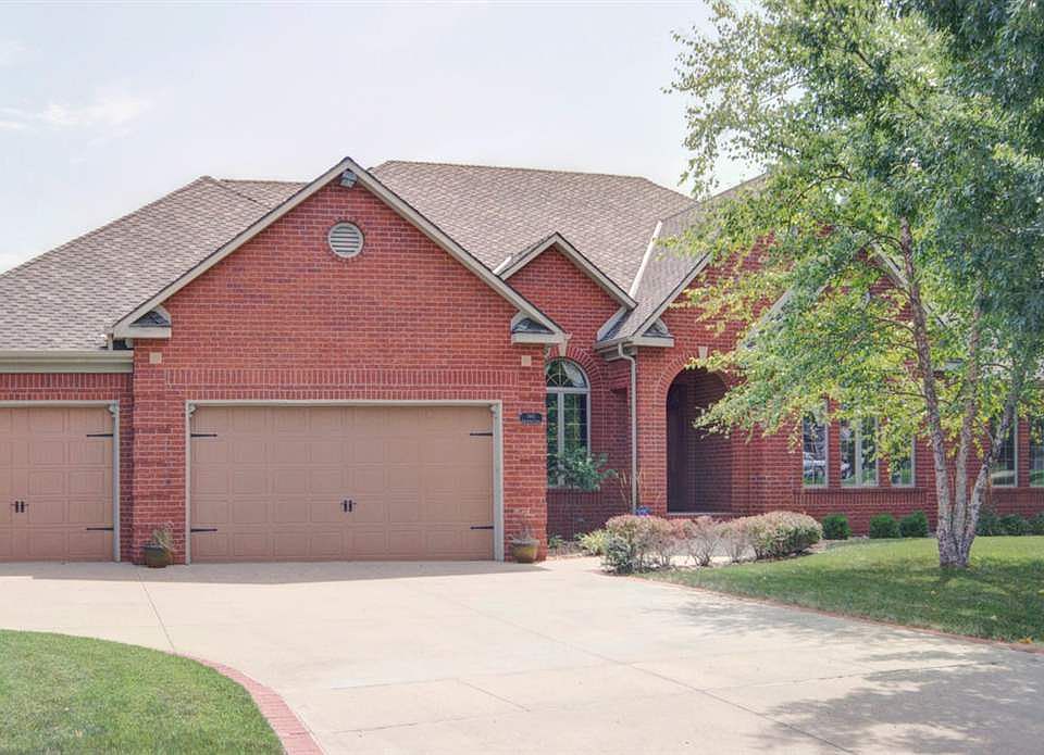 One of the most distinctive homes in the sought-after Belle Terre neighborhood with new windows, roof, and lots of updates! This gorgeous custom, all-brick home sits on a beautifully landscaped lot that backs up into a lush wooded area. You will love the privacy and relaxing atmosphere of the large, fenced yard with its koi pond, stone pathways, fire pit and swimming pool with an amazing view of the trees. The home features thoughtfully designed entertainment spaces both inside and outside and surround sound throughout. The main level offers spacious living spaces including formal and informal dining areas, family room with a double-sided fireplace extending into the kitchen, and a sunroom that you will fall in love with! The open-concept gourmet kitchen has new stainless steel appliances, granite countertops, a large pantry, and lots of cabinet space. You will notice the exquisite custom woodwork and hardwood floors crafted from three different types of wood throughout the home. The master suite with its large walk-in closet and large luxurious bathroom is also conveniently located on the main level along with the laundry room and two additional bedrooms. All bedrooms on this level have private bathrooms. The walkout basement features two additional bedrooms, a huge recreation space with a wet bar, a theatre room, and a large unfinished storage space that can also be used as a workout room. There is also access to the screened-in patio from this level. The home features an oversized three-car garage with tons of storage space and a built in workbench. With Wichita taxes and Andover schools, this home won't last long! Call today for your private showing!