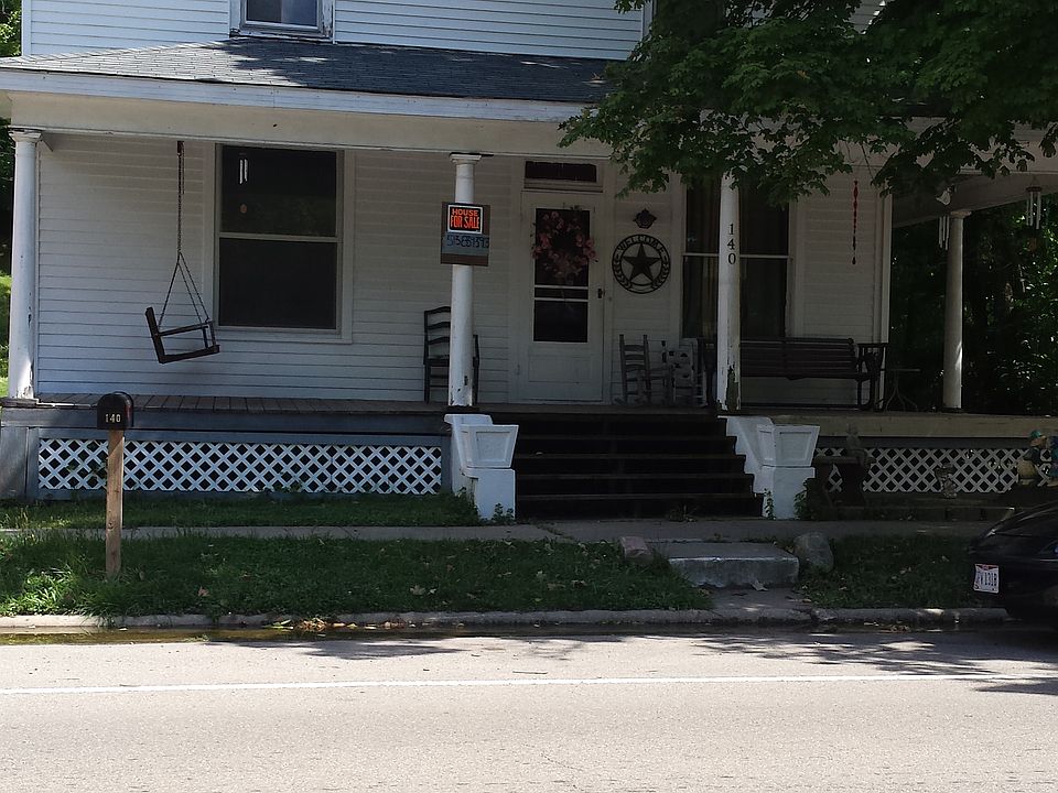 old wood work throughout the house. House needs cosmetic work but has alot of potential. Roof and L shaped front porch replaced 6 years ago. Jetted tub recently installed in bathroom.Big back yard with 2 storage buildings and concrete slab for garage. Will do land contract for 45000 or sell for 35000 cash. Land contract requires 7000 down payment and 500 a month with no interest added. Would prefer to be contacted by phone if interested 513-839-3903
