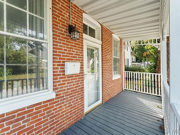 Take a look at this historic 1 1/2-story brick home with a charming covered front porch! On the main level, you'll find high ceilings throughout, a spacious living room, and an updated kitchen. The primary bedroom features double closets, and the bathroom has a tiled floor and bath surround, along with a convenient laundry room. A staircase leads to a generous upper bedroom. You'll love the remodeled kitchen, which boasts newer countertops, white cabinets, a sink, stainless steel appliances, a dishwasher, a gas stove, a microwave, and a refrigerator. Off the kitchen, a door opens to a large, flat, fenced backyard. There is also an alley behind the home and a shed for additional storage. Notable upgrades include a newer air conditioner, furnace, and water heater, all of which are approximately 5 years old. Enjoy the peaceful and friendly neighborhood, with easy access to the YMCA, bike trails, recreation center, shopping, restaurants, and schools, as well as SAFB and St. Louis. This house is move-in ready!
