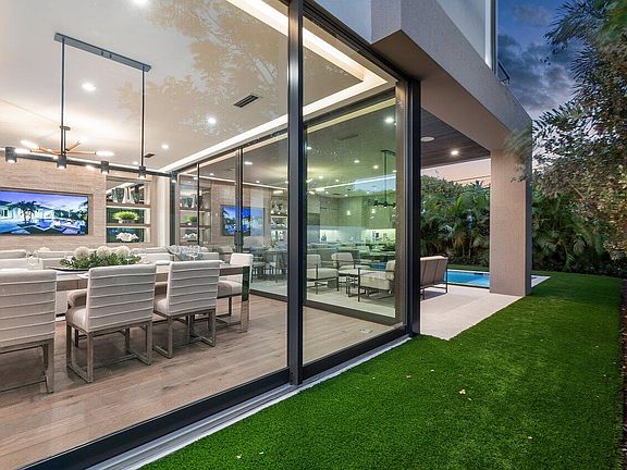 NEW CONSTRUCTION IN EAST BOCA! MODERN ARCHITECTURE, OPEN-CONCEPT, 4 BR / 4.5 BATH, PROFESSIONALLY DECORATED AND FULLY FURNISHED LUXURY TOWNHOME MOVE IN READY! IDEALLY LOCATED JUST ONE BLOCK FROM BOCA'S BEST BEACHES AND WALKING DISTANCE TO LOCAL DINING AND PREMIER ENTERTAINMENT! This 4-bedroom ensuite luxury townhome features a custom wine bar with solid surface quartzite countertops and full backsplash, full glass enclosed wine display with 180+ bottle capacity, an under-cabinet wine cooler, custom kitchen including designer flat panel cabinets, hidden walk-in pantry, quartz counter tops, Thermador luxury appliance package including a 36'' built-in stainless-steel refrigerator/freezer, 36' gas range, built-in microwave, concrete upper-level floor system and concrete stairs with custom stained wood and glass railings, a main level powder room, in home elevator, upper-level open loft/living area, upper-level laundry, designer ceiling details featuring cove lighting in great room and master suite, custom built-in entertainment center in great room featuring stone cladding, linear electric fireplace, and floating shelves and cabinets. 10' ceilings, floor to ceiling impact designer windows and doors, oversized 5' pivot glass front door, frameless heavy glass shower enclosures, freestanding soaker tub in master bath, Control4 smart home system including lighting controls, alarm system integration, AC control, cameras, and built-in speakers. Exterior features include two private covered balconies, gas heated saltwater pool with large sun deck, waterfall feature, and spacious private lanai including a summer kitchen with a built-in BBQ, sink, and under-counter refrigerator, resort style landscaping package with artificial turf and landscape lighting in both the front and backyard. Enjoy a low maintenance lifestyle in this stunning masterpiece by award winning home builder CJM Communities!