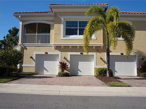 You'll love this fabulous end unit in conveniently located Bay Street Village second floor condo with 3 bedrooms 2 baths Maintenance-free, 1528 of sq ft living area, this home is move-in ready. This open "IBIS" model is bright, with high ceilings, Concrete block construction with PGT impact windows all around. Kitchen complete with 42-inch Java color cabinets, Crema Carmel granite counter tops, stainless steel appliances, a walk-in custom closet off the Master Suite, Ceramic Tile flooring (17 inch) throughout, custom ceiling fans, Updated laundry room with LG appliances, Updated lighting fixtures in dining and kitchen areas. Blackout blinds and neutral carpeting in bedrooms, All rooms have remote control fans. Private screened-in lanai overlooks tropical green space. A private one car garage with polyasparic floor coating is included. Paver driveway and entrance completes the beautiful look. Guest parking is available Condo has been used by owner-immaculate condition! Enjoy the safety of gated access,! Water and Sewer included in the very reasonable HOA. NO CDD FEE. Resort style community pool, shady cabanas, fitness center and recreation room. Conveniently located between Sarasota and Venice, Pine View school a short distance away; the number 2 rated school in ALL of Florida. minutes from top rated beaches in the country such as Siesta Key, Nokomis Beach, Legacy Trail for biking, touring nature in Oscar Scherer Park, Historic Spanish Point, countless dining choices for every palette, endless shopping venues and so much more! Furniture available under a separate contract.
