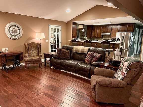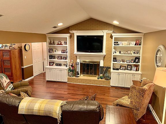 One story ranch 4 bedroom 3 baths 2 master suites, both master suites have two closets one of which is a walk-in closet, Tile in the kitchen, sunroom, and baths. carpet in bedrooms, wood floor in living room and dining room Open concept kitchen/living room, vaulted living room, solid surface counter tops in kitchen and bath, gas fireplace, built in book shelves in living room and sunroom, custom wood cabinets in kitchen, bath and laundry room, laundry room sink, wooden plantation blinds throughout the house, 2 year old inground marcite pool, 3year old roof with architectural shingles, storage building with electricity and AC unit with covered boat storage area, storage building could be used as workshop, storage, game room/man cave, Covered patio area with exposed wooden beams with electricity, gas, two ceiling fans, and cable, gas tankless hot water heater, mud room/laundry room, crown molding throughout, 2 car carport with side parking for 2