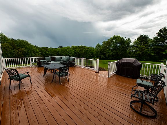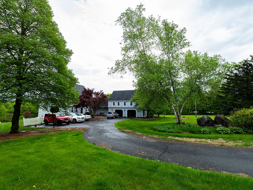 This well built elegant home sits behind a stone wall on a desirable street with easy access to main routes and close to the center of town. the first floor boasts a eat in kitchen, a large fireplaced living room, dining room, first floor bedroom, office space and large deck off the back. There three bedrooms and two baths upstairs. the master bedroom has a fireplace and the bath room has been remodeled recently. The garage is oversized to house your toys and vehicles.. the upstairs of the garage is great for storage or future expansion. There is also a garage door in the basement for easy access. Check out the new siding on the main house. Bright and freshly painted in side. Estate lot has 4.77 acres of manicured land. could be sub divided for back lot. perfect for many applications.