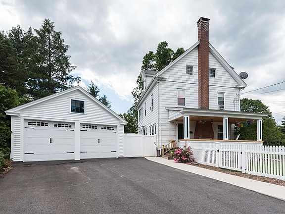 Stately and spacious Easthampton Colonial in fabulous location. With seasonal mountain views and minutes to downtown. With 3 bedrooms and 1.5 baths, this sunny Center Hall Colonial is filled with much original charm, wood floors, natural wood trim, coffered ceilings and a fireplace in the living room. Newer Kitchen (2012) with 5-burner gas stove, granite counter tops, custom cabinets and island. Inviting master bedroom opens to a large sun room, perfect for a home office or summer sleeping porch. If more space is needed,the walk up attic is ready for finishing. Enjoy entertaining in the new sun room, leading to the deck and fully fenced yard. You will feel great coming home to a newly paved driveway and walkway, new electric garage doors, and freshly painted house and garage. No need to worry about a damp basement here, either, waterproofed with curtain drain! There is so much more to this property, come and see for yourself! First showings Open House Saturday June 24th 11 -1pm