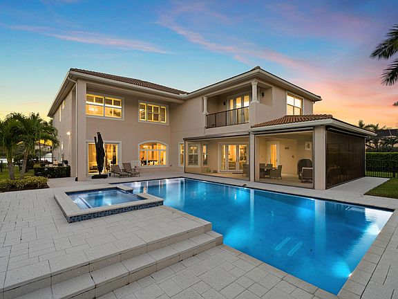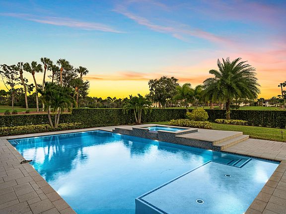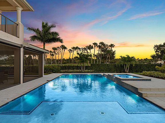 Welcome to Paradise! This 6 Bedroom, 6 Bathroom, 5,116 living sqft home is in spectacular condition with hardwood floors and private views of the golf course. This oversized home/lot is on one of the lowest street traffic locations in the community and is also situated on the perfect location between a Par 3 and Par 4 Golf Hole. Imagine having a cocktail looking at the colorful Florida sunset while walking out of your private backyard and hitting a couple golf balls with friends. This is TRUE South Florida Paradise Living! The interior of this home has many great features like a gourmet style kitchen with gas stove and bar that are perfect for entertaining, a Golf Cart Parking Spot in the garage, hardwood floors, office and 2 Guest Bedrooms downstairs, quartz counter tops, larg formal dining room, a living room that looks over pool/golf, hurricane impact windows and doors, massive laundry room with Television, crown moulding, plantation shutters, custom wood wall trim, roll down screens and much more. You can literally eat off the floor of this home so come see it fast and it will take your breath away! This home comes with the HIGHLY SOUGHT AFTER "Intermediate" Golf Membership which is only a $17,500 Initiation Fee, and $810/Month Fees. The Luxury Jupiter Country Club is full of amenities including a 24-Hour Manned Guard Gated a Pristine 18 Hole Greg Norman Signature Golf Course, Pickle-ball, Tennis Clubhouse with Spa, Restaurants and Athletic Facilities. The Fitness Social Clubhouse, which Includes access to Private Trainers, Six Lane Swimming Pool, a luxury resort pool, kids playground and much more. Another huge perk to this community is that it is only 8 miles to BEACH, 1 Mile to Highways, minutes to grocery/restaurants and it is Zoned with "A" rated Schools.