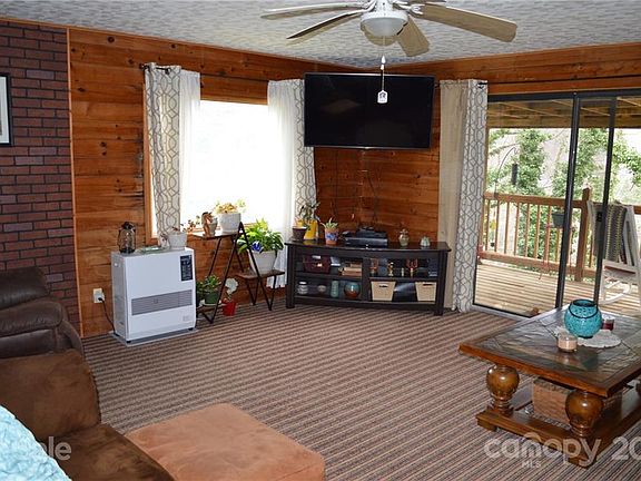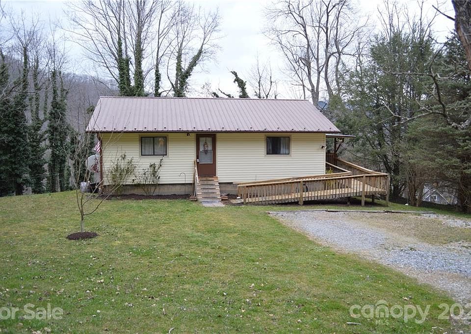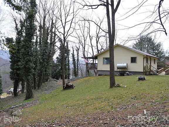 Located just outside the Waynesville city limits this well maintained 2 BR, 1 Bath, (1 incomplete Full bath in basement) wrap around deck, large Master BR with walk in closet, end of road privacy plus a back entrance (just needs some gravel) which would come in handy if full basement were finished into more living area or a separate income producing rental. Metal roof, log interior, vinyl siding exterior, (could be removed to expose logs) flat front yard with fruit trees and fire pit, sloping back yard with a few black walnut trees for shade!