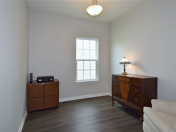 Wonderful ranch style living in convenient Peachmont Farms. Enjoy one level living and a very open floor plan boasting huge granite island kitchen with stainless appliances, soft close, dovetailed drawers, trendy light gray cabinets with dark slate/brown center island. Open great room with gas log fireplace. TV stays! 3rd bedroom is the den. Easy care LVT flooring flows thru the living areas. The primary suite features carpeting and double bowl sinks in the primary bath plus double faucet ceramic walk-in shower. A custom low maintenance deck spans the rear of the home & has 2 staircases to the level yard. The massive lower level is a blank canvas! It is plumbed for a future bath. This fabulous location is minutes to the quaint town of Mars, the Seven Fields and Cranberry shopping districts and easy access to highways, PA Turnpike, hospitals, Lemueix Sports Center and amazing parks. Living room is actually the Sun room.