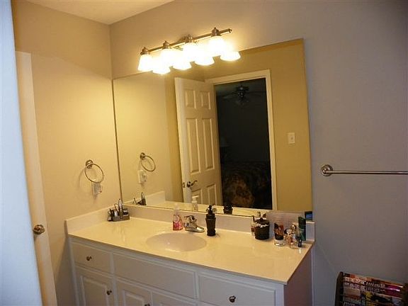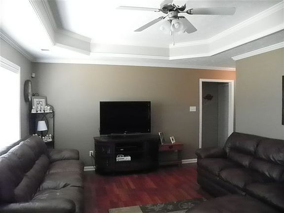 Darling 3 bedroom 2 bath with hardwood floors in the living area and dining room. Stained cabinets, brush nickel fixtures and black appliances. Split floor plan with nice size master bedroom that has a walk in closet. Separate laundry room.Fridge to sta