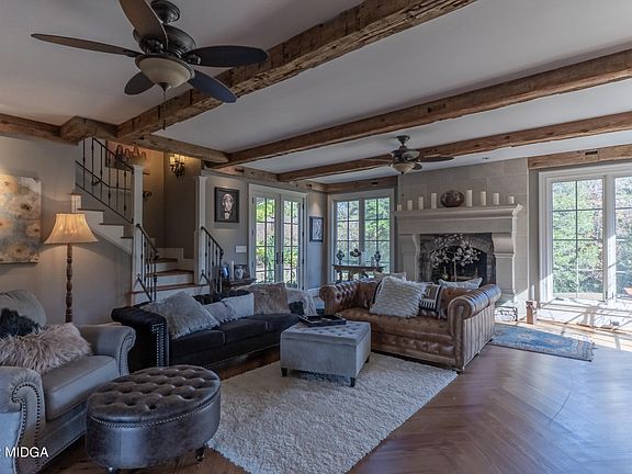 This grand 3 bedroom / 3.5 bathroom home sits on 13 acres in Thomaston and has a 1 bedroom / 2 bathroom guest home with a sauna and full kitchen. The main dwelling boasts a library, formal living room/music room (large enough for a grand piano), family room, a very large kitchen, and primary bedroom on the main floor, with its own covered deck, and hardwood flooring throughout the home. The kitchen features its own fireplace, cobblestone brick flooring, granite countertops, lots of soft close cabinetry and another covered deck. The formal living room has a grand fireplace, beamed ceilings throughout, and floor to ceiling windows that maximize the space. The primary bedroom is the only bedroom on the main floor and has a private covered deck, a walk in closet, and its own en suite bathroom complete with standalone tub, spacious shower, and double vanities. All doors are stained and solid wood. The two additional bedrooms upstairs have their own private en suite bathrooms, making this ideal for families or host ing guests. The home also contains a library that has built in solid wood shelving. The backyard boasts a beautiful in ground swimming pool with poolside gazebo complete with firepit and pool furniture. The guest house is off the pool and features two fireplaces, a full kitchen, a bedroom on the main floor, and a full basement with a bathroom, wet bar, and sauna. The upstairs attic can be finished and utilized as two additional bedrooms. Make your appointment now to come see all this home has to offer!