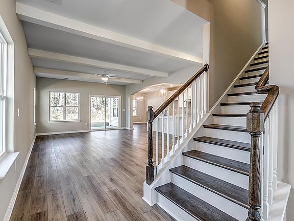 This craftsman style home was made for EZ living and entertaining! Whether you like to throw small private dinners or have a huge family gathering this home can accommodate well! The first floor entry is elegant and spacious as well as the large two car garage which is great for vehicles and storage! This home has ez access second floor storage to keep boxes within hands reach! Natural gas community with a great amenities center & wonderful active community! The beamed decorative ceiling in the living space makes a wow statement! This home offers a first floor primary bedroom suite with decorative boxed tray ceiling, outdoor stone gas fireplace on the rear covered porch, lvp flooring throughout most of the first floor, staircase to the second floor with two additional bedrooms, loft and full bath, pendant lighting over the large island! Beautiful upgraded white shaker style cabinets with quartz tops and brushed satin pulls! The kitchen comes complete with a gourmet appliance package too & decorative moldings in multiple locations! Upgraded cabinets and quartz counters with a gourmet appliance package complete the kitchen too. Large shower stall in primary bathroom & a first floor powder room, comfort height toilets and raised vanities complete the bathrooms as well! Large office with french doors upon entry to the home too which can be used as any type of flex room you need / desire! Natural gas line out back too for a bbq hookup! Fabulous amenities center too within this Natural Gas Community!