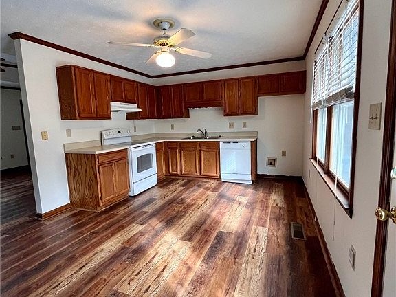 The heart of the home lies in the inviting eat-in kitchen which is connected to the spacious living room and has access to the exterior rear deck. Luxury Vinyl Plank (LVP) flooring throughout the kitchen, living area, and bathrooms adds a modern touch with durability and a sleek appearance. The bedrooms have the cozy comfort of new carpeting providing a soft and plush feel underfoot.