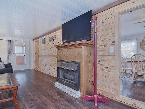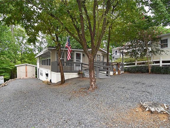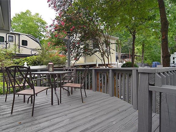 Lake Life starts today with this move in ready, furnished Park Model w/ addition & finished basement! So much versatility & space. Fully equipped kitchen w/ refrigerator, range, microwave & dishwasher & open dining area. The addition is the ideal living rm w/ a wall full of windows & fireplace! Sunroom is currently used as a guest room ~ just open the door and/or windows, & the room receives the cool air or heat from the main home.  Step outside onto the covered back deck & enjoy the outdoors in all weather. Semi private back yard as property backs up to common area. Step down to the lower deck w/ covered storage. A creek runs behind the property & overlooks the common grounds offering a nice wooded back drop. The basement has its own entrance & features a bedroom, den & full bathroom! Full size W/D adds much convenience! Parking is no issue here. Bring your boat, golf cart, cars & more! The wired shed offers space for golf cart/ATV or storage or workshop! MOTIVED SELLERS BRING OFFERS!