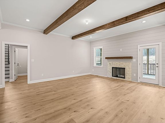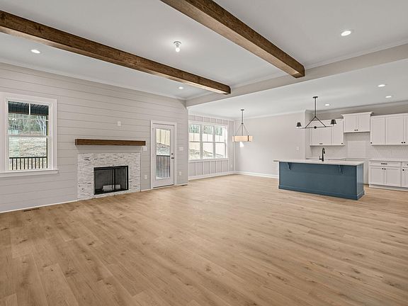 This mountain inspired farmhouse perfectly blends charm, comfort, and contemporary design. Thoughtfully crafted with a spacious open-concept layout, the home welcomes you with a cozy living room featuring a fireplace, seamlessly flowing into a beautifully appointed kitchen with generous counter space, a center island, and a pantry for extra storage. The first-floor owner's suite boasts a tray ceiling, as well as an ensuite bath with a walk-in shower, double sinks, and a spacious walk-in closet. Two additional bedrooms, a full bath, and a convenient laundry room complete the main level. Relax on the inviting covered front porch or unwind on the screened back porch overlooking the peaceful surroundings. Upstairs, you'll find a fourth bedroom, full bath, and a large bonus room, plus a walk-in storage area for added convenience. A two-car attached garage rounds out this exceptional home, offering both style and functionality in a beautifully designed setting.