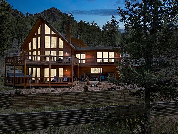 All offers will be considered! NO HARM IN COMING TO LOOK : Just 12 miles from shopping and dinning in Conifer is this beautiful Luxury Mountain Home on its very private lot 1/4 mile off of 285 on the side of Mount- Bailey. This quiet mountain retreat boasts spectacular views from every story and angle with 2 wrap around decks on the main and lower levels. Inside is the massive kitchen, complete with high end appliances Brazilian Granite counter tops, eating area with vaulted ceilings throughout that open to main level family room with wood stove, floor to ceiling windows and a main floor Master Bedroom with 5pc en-suite bath with jetted soaking tub and large walk-in closet. The second level hosts over sized guest rooms with valued ceilings. The lower level is joined to the large attached 2 car garage, completely finished basement including a kitchen, with fully windowed walk out porch including a new replacement hot tub.