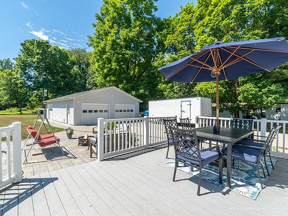 Located on a 75 x 264 lot you'll find this immaculate 1.5 story Cape style home with 4 bdrms. ,3 baths, a spacious living room, large kitchen/dining area w/ sliding glass doors to the deck & patio.Upstairs full bath has a jacuzzi tub . Heated finished basement holds a large family room, gym and bath. The composite deck has a surrounding stone patio that continues to the gorgeous 15 x 30 AG pool with tree decking and slide&vinyl fencing. Also; covered wrap-around porch, a heated 3 car garage, with add'l storage area, paved drive & a large building w/workshop.