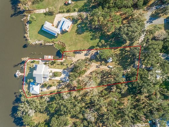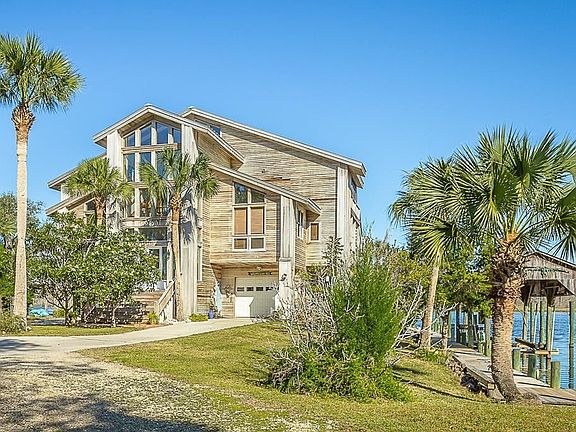 Remarkable cypress home on the Apalachicola River Intercoastal Waterway with deep water dockage! 1.47 ac landscaped lot, over 300 waterfront ft (includes 143' on river), private boat basin with dredge permits, concrete boat ramp, boat lift on canal and dock & gazebo on river. Elevator services all 3 levels. 22' beamed ceilings on 3rd floor with living-dining-kitchen area, custom cabinets, guest bath and master suite. Den, wet bar and entertaining area with pool table are on the 2nd floor which also has 2 bedrooms, 2 baths. 4th bedroom/bath and foyer on 1st floor. Cypress and master craftsmanship throughout home, custom etched glass on entry door, wraparound porches on all levels, screened porch off kitchen. Entertainment pavilion with BBQ grill and RV parking, 2 enclosed garage bays, water treatment system. Extraordinary property!