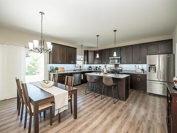 Awesome NEW PRICE!OPEN 8/11,1-3. Newer Ranch home with less than a year old architectural roof. Step into contemporary comfort with luxury vinyl plank (LVP) flooring that spans the MF living areas & the serene primary suite. Bask in abundant natural light that illuminates every corner of this inviting home, creating a warm and welcoming atmosphere. The heart of this home features a tasteful tile backsplash, under cabinet lighting, a center island for culinary creativity, a gas stove for precision cooking, cabinet hardware for added refinement, and granite countertops for enduring beauty. The insulated and dry-walled garage boasts 8-foot doors, a convenient pet door, and a gas heater, ensuring comfort and functionality year-round. Enjoy privacy and relaxation in the fenced backyard with a charming patio, perfect for outdoor entertaining and peaceful retreats. Ideal location near the Pkwy, Splash Station, new middle & high schools, parks, popular restaurants & convenient shopping.