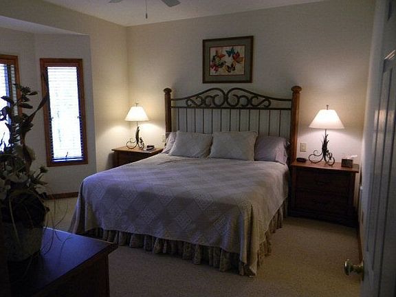 WHAT A BUY! Impeccable furnished end unit. Everything looks new. Cozy private spot near Bass Lake feels like a cabin in the woods. Stone fireplace