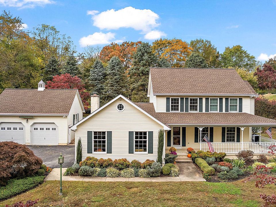 Welcome to 140 Ponds Edge Drive in Chadds Ford, your new Home Sweet Home! Well-appointed in a quiet suburban setting, but yet convenient to US1, PA/DE 202 and the Delaware State Line, as well as area shopping, fabulous restaurants and events. This spacious 2,304 sf home is beautifully hardscaped/landscaped as you approach the entrance after parking in either 2-car garage or the 4-car driveway. Fabulous wrap-around porch surrounds the front and right side of the home. As you enter the foyer area, you are greeted by gleaming hardwood floors. There is a spacious living room just inside with lots of natural light. Next, we enter the family room, which features a brick, wood-burning fireplace with glass doors. There are also glass sliders which lead to the rear patio where you can entertain your guests in all the beauty and privacy of your back yard. The formal dining room features elegance and style with a wrap-around large bay window and double doors leading to the wrap-around porch. Then you enter the kitchen with eat-in area, double sink, stainless appliances, pantry, built-in desk and ample cabinetry for storage. Light beams through the sliders that lead to the patio as well. There is a guest half-bath on the first floor for your company. The laundry room features washer, gas dryer and extra-large pre-wash sink. The second floor features the Primary Bedroom and ensuite Primary Bathroom with ceramic tile, modern glass shower and soaking tub. Bedroom 2 is currently being utilized as an office. There is a second full bath with tub/shower combo. Bedroom 3 is filled with natural light as well. There is a spacious attic for extra storage. Large fenced-in area to the right of the property. The roof has been replaced in the last 2-3 years. All windows and screen doors have been replaced with Andersen. HVAC is new. There is an easement that allows for Lot 2 to have access from driveway. See the documents attached.