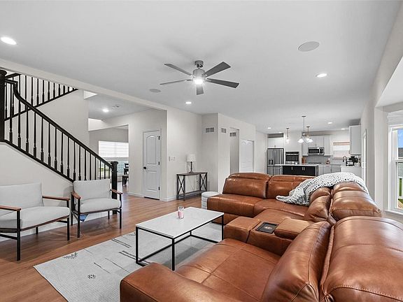 Welcome HOME to this exquisite 4-bed, 2.5-bath home offering 2900+ sq ft of sophisticated living space. Less than a year old, this 2 story gem is better than new with landscaping, vinyl fence & blinds...and is MOVE-IN READY!! Step into a beautifully designed kitchen featuring quartz counters, spacious center island, subway tile backsplash, pantry & designer light fixtures. Kitchen is equipped with stainless steel appliances including gas cooktop, double wall oven, dishwasher, refrigerator & microwave. Main level offers an airy & elegant atmosphere with 9' ceilings, formal dining room, office, half bath & laundry room. Upstairs, the master bedroom awaits with master bath & 19x10 walk-in closet. Full unfinished basement offers full bath rough-in, egress window- ideal for 5th bedroom. Located in the sought-after Estates of Prairie Wind, this home is close to shopping, dining & recreation & offers a neighborhood rec area with basketball court, playground & pavilion for residents to enjoy.