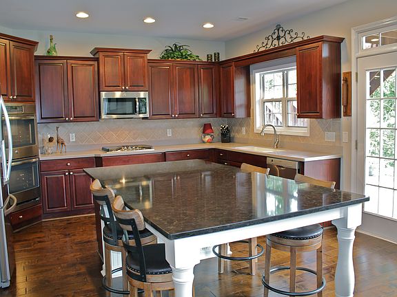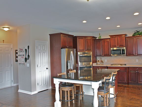 - Kitchen Features: Eat-in Kitchen, View to Family Room, Stone Counters, Kitchen Island, Pantry Walk-In, Solid Surface Counters
