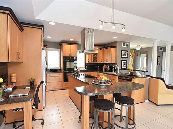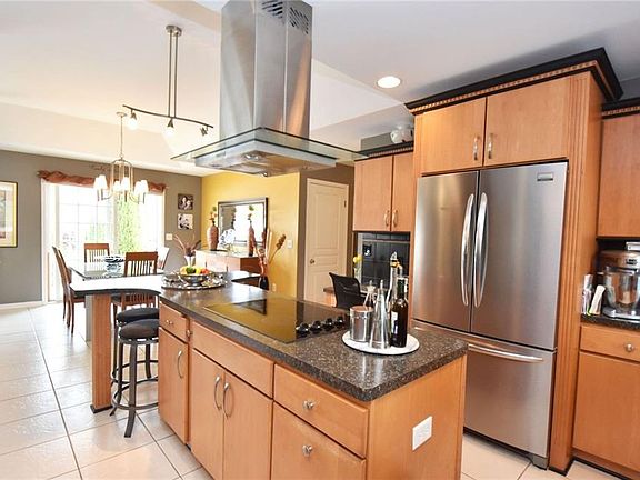 This custom built ranch was made for entertaining! The open floor plan boasts a large kitchen with island, dining area, and living room with gas fireplace. Home has spacious bedrooms, master suite, first floor laundry, and lots of closet space. The finished basement with walkout entry has plenty of room for relaxing as well as a fully equipped kitchen with all appliances included. The backyard oasis has a large patio, beautiful landscaping, and a self-cleaning inground pool with built in hot tub all controlled by remote. Desirable neighborhood and Hilton schools.