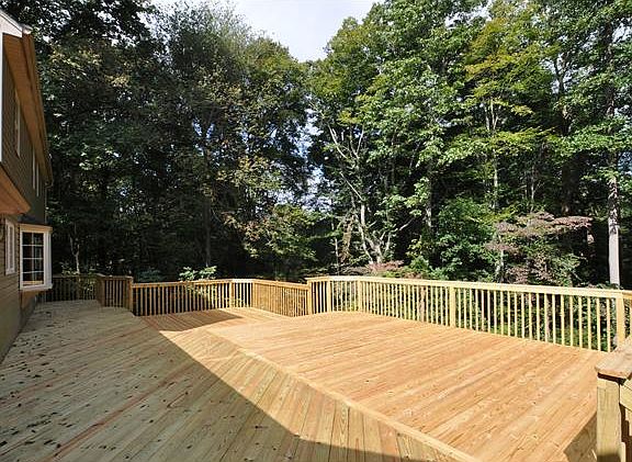 This home is priced below appraised value. Nestled serenely on a 2.5 acre cul-de-sac lot, the stunning location of this home harmonizes with the equally impressive interiors providing a relaxing haven to return to at the end of the day. Generously sized rooms and handsome hardwood flooring invite you to take a moment to picture yourself being embraced by this home. The updated eat-in kitchen offers gleaming granite countertops, ample cabinet space, Bosch© cook-top, and an eye-catching brick accent wall. Open the sliding glass doors to bring relaxing breezes directly into the family room which flows seamlessly to the striking kitchen, both rooms are accented with exposed wood beams. Further melding the space with the impressive scenery is a brand new expansive raised deck where you can enjoy warm weather meals amid the brilliant landscape. An idyllic blend of breathtaking views and captivating natural beauty, one cannot help but be awed by the impressive assortment of mature trees and surrounding countryside. Further inspection reveals well-sized formal living and dining rooms, the perfect venue for gracious entertaining. The allure of this home continues to the upper level master suite complete with huge (10'x7') walk-in closet and full bath. Not to be overlooked, three additional upper level bedrooms and full bath offer plenty of living space to accommodate a variety of needs. An unfinished walk-out lower level and two car garage complete the exceptional value of this wonderful home.