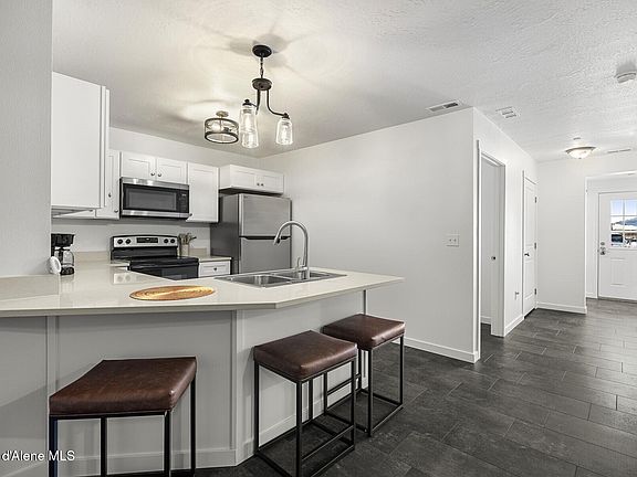 Welcome to the Silver Strike Condos! Situated in the heart of historic Kellogg, Idaho, & just moments from Silver Mountain Resort, this newly remodeled and beautifully appointed condo offers over 600 sq. ft., 2 bedrooms, 1 bathroom, arranged with a spacious, open-concept design. Enjoy brand-new fixtures, appliances, quartz counter tops, and a porch with mountain views. This property also offers an oversized, 2-car garage. Whether you are local, interested in a weekend getaway, or a potential income property, this property offers it all. The HOA fee covers landscaping maintenance, snow removal, and trash removal. There are security cameras on the exterior of the building and the parking areas are well lit adding to the convenience of a lock and leave property. Silver Mountain Resort, the local supermarket, coffee shop, and restaurants are within walking distance. Silver Valley is home to beautiful mountains, streams, and rivers, and Coeur D'Alene/Lake Coeur D'Alene is 30 minutes away.