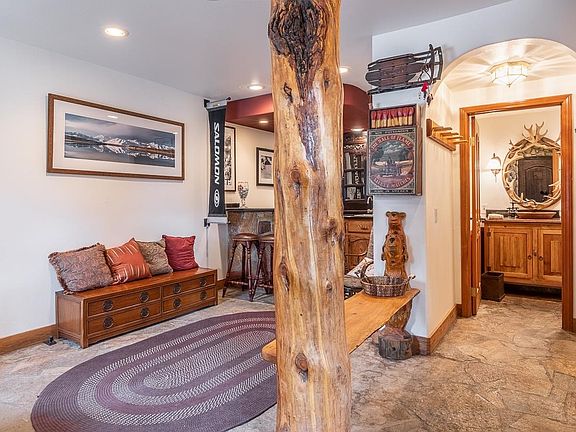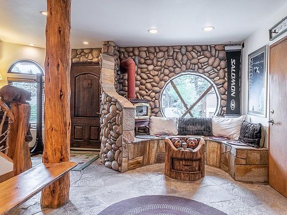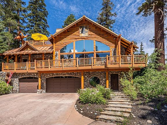 Warmth and character fill this wonderfully handcrafted, luxurious, and beautifully furnished custom home located less than a quarter mile from Mammoth Mountain's Canyon Lodge. The minute you pull in the drive way the masterful craftsmanship is obvious from the signature carved airplane to the log and stone finish. Inside find beautiful wood and hand carved stone flooring throughout which accents the wide-open floor plan. The open kitchen features granite counter tops and stainless appliances, dining and living area highlighted by gorgeous wood flooring, floor-to-ceiling south facing windows, vaulted wood ceiling and massive two-sided fireplace. The other side of the fireplace connects to a welcoming game room with custom wood and metal bar. The result is a bright open space perfect for entertaining or relaxing. The over-sized master suite includes a fireplace, steam shower and spa tub. Three of the other bedrooms are creatively decorated in cowboy, cabin and Native American themes offering a true vacation experience. The over sized loft area is perfect for a kids retreat or additional storage. This home has 5 fireplaces. Outside living options are not missing in this home - the front wraparound deck is off the living room and offers beautiful views and plenty of sunshine. The roof top deck offers views to Mammoth Mountain, BBQ and multiple outdoor heaters for more entertaining or relaxing options. Not to be missed is the gorgeous glass enclosed hot tub, private steam room and shower accessed of the main level hall or master suite. Adding to the easy living are high-end electronics and high finish three-car garage with plenty of storage and room for year-round toys. The backyard oasis features over 40+ trees for privacy and natural beauty. This home is a must-see for anyone looking for luxury living on a quiet street in an amazing neighborhood.