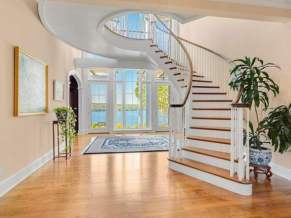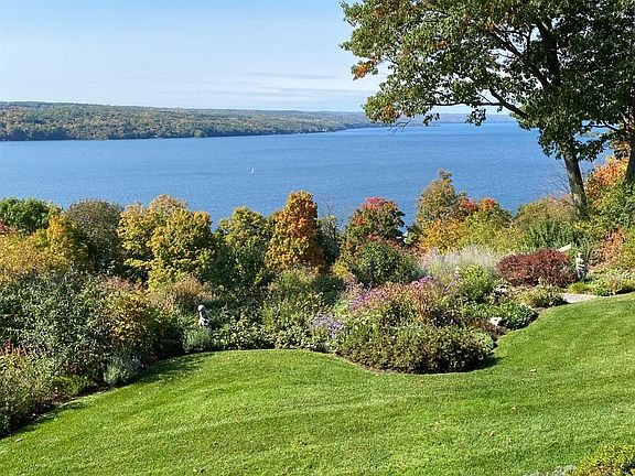 Elegance and grandeur abound in this exquisite Colonial home in the Lansing Lake Watch subdivision. Year round views of Cayuga Lake! Thoughtfully built with custom features throughout including grand arches, floating staircase in the foyer, large pocket doors highlighted by prominent decorative molding, custom kitchen, elegant dining room, library, study, & a sprawling first floor master suite with luxury bath and dressing room. The flexible floor plan with 7400+ sqft sits on an impressive 1.7 acre lot giving generous amounts of space inside and out! Finished lower level walks out to a fenced in patio area with in-ground pool. Large stone patio on the backside of the house runs from kitchen to the master suite with walkout access from 3 rooms. Wall to wall windows on the west side of the house allows for effortless lake views of the beauty that backdrops this home. Detached 2 car garage. Exquisitely landscaped and partially wooded lot offers privacy and priceless views of Cayuga Lake!
