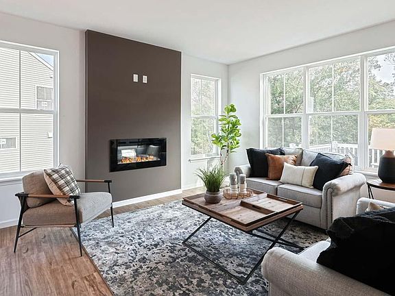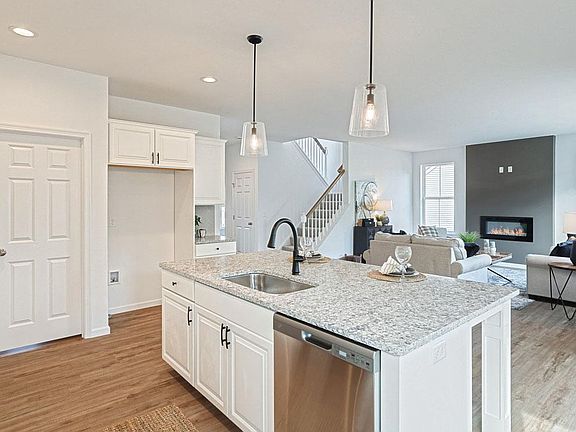 This beautiful home with welcoming front porch includes a 2-car garage with spacious mudroom entry and built in lockers with bench. The first floor boasts 9’ ceilings and stylish vinyl plank flooring in the main living areas. To the front of the home is a convenient, carpeted flex room that can be used as a study, living room, or other versatile space. The kitchen is well-appointed with quartz countertops, tile backsplash, stainless-steel appliances, and large pantry. The kitchen opens to a sunny dining area with access to the rear deck and a comfortable great room is warmed by a fireplace. The 2nd floor owner’s suite features an expansive closet and a private bathroom with 5’ shower and double bowl vanity. Adjacent to the suite are 3 additional bedrooms, a full bathroom, spacious rec room, and a laundry room.