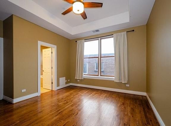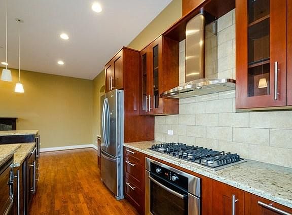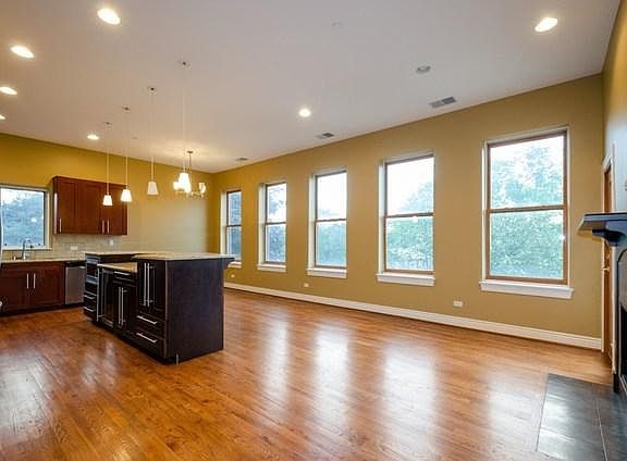 Stunning, spacious two bedroom, two bath condo with open floor plan, ten foot ceilings, walk-in closets, and 7 foot windows providing abundant natural light. A stylish unit boasting impressive finishes throughout, including hardwood flooring, furniture grade cabinetry, stone countertops and stainless steel appliances. This flexible living space includes a gas start fireplace, in-unit laundry, east facing deck, and detached one car garage, all within walking distance to the Metra.
