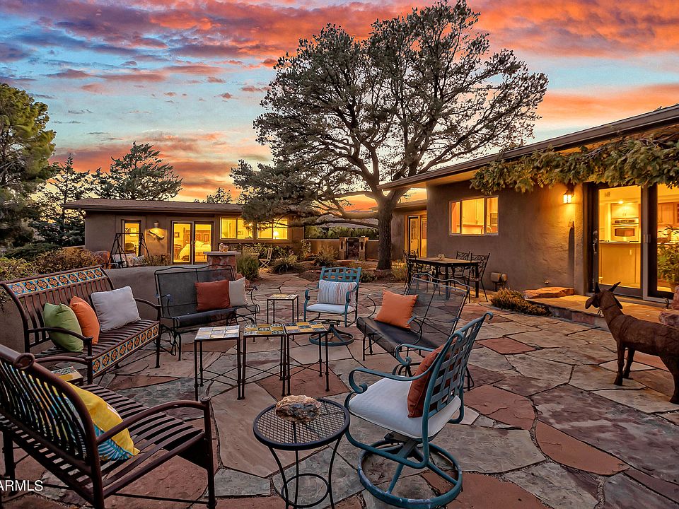Perched on one of Uptown Sedona's premier lots, this home offers an unparalleled vantage point to experience the majestic Red Rocks in all their glory. From the elevated, expansive front patio, the panoramic views stretch as far as the eye can see, capturing the famed Sedona sunsets that turn the sky into a living canvas. A main home of 2 bdrms & 2 bths and detached CASITA offering a LR/ bdrm/ bth / office offersflexibility - making it ideal for visitors or as a creative retreat. Privacy meets grandeur, a rare find in the heart of one of Arizona's most sought-after locales.