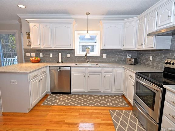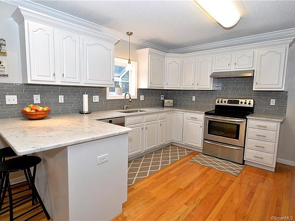 Welcome Home! You will love this stunning updated 3 bedroom colonial set on a quiet cul-de-sac in a desirable Bunker Hill neighborhood. The eat in kitchen offers beautiful white marble countertops, a glass tiled backsplash, SS appliances, a large peninsula, a cozy breakfast area and sliders that walk out to an oversized deck and stone fire pit. Just off the kitchen are the cathedral family room, a formal dining room and living room with a warming gas fireplace to relax around after a busy day. Upstairs you will find a comfortable master bedroom suite with a large walk-in-closet and renovated bath with a large walk-in shower. Two additional bedrooms, another renovated full bath and laundry closet finish the second floor. The finished lower level currently houses a home business hair salon and half bath. Other features to this wonderful home are new gleaming hardwood and tile floors though-out and crown molding in most rooms, central air and a 2 car garage. Great commuter location. Easy access to Rt 8 & I-84. Come see your dream home today!