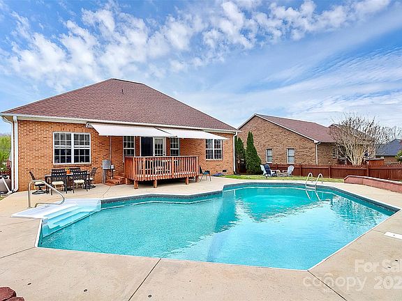 Here is the home you've been waiting for! An all-brick, split-bedroom ranch in a desirable Mooresville neighborhood, close to Lowe's Corporate, Davidson, and Lake Norman. The breakfast area and flex space off the kitchen provide plenty of space. New dishwasher in 2023. Bathroom has jacuzzi tub. Kitchen has Double Oven and Gas Fireplace in the Living Room. The home features a large living space that looks out to the in-ground pool, a fenced backyard, and a firepit. Sealed crawl space and dehumidifier completed in 2020, electric awnings for the outdoor deck. Pool cover and liner updated in 2018. Walk to beautiful Bellingham Park, which has a growing greenway! The kitchen island, washer/dryer, and outdoor patio furniture convey.