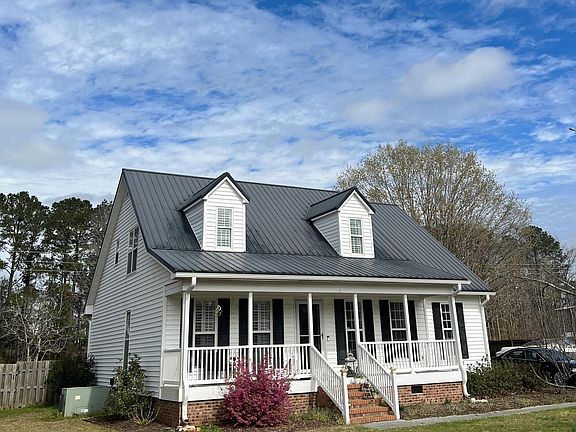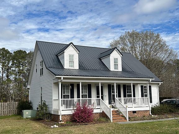 This beautiful Cape Cod Style home boasts 3 bedroom and 2.5 bath. This home features a loft family room overlooking the living room with a vaulted ceiling, a spacious first floor master bedroom with cedar lined walk in closet, a large garden tub and tiled walk in shower, Granite kitchen counter tops and a nice sized kitchen island, a cozy fireplace equipped with gas logs, a rocking chair front porch and large back deck perfect for entertaining. A no worries Metal roof, an 11'x20' workshop/storage building with a Pergola Patio. A large lot and private backyard (no houses behind you). Plenty of room for a large garden. This home is perfectly located far enough from the hustle and bustle of the city but close enough to everything you need, Stores, shops, water access. There is even a boat ramp in the neighborhood. Agents see agent remarks for Cartus Relocation. Offers need to be negotiated verbally and approved before reducing to writing.