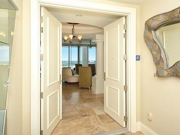 Big Water views with year round sunsets from the 44 footcovered grand terrace with floor to ceiling window walls for unsurpassed views for your pleasure! This residence features a master suite and two additional ensuite bedrooms. Granite counter tops, solid wood cabinetry, a private elevator with foyer, separate utility room with washer and dryer, service entrance and outside the unit storage make this a superb residence! Amenities include three pools, hot tubs, outdoor grills, tennis, a state of the art fitness center, theater, billiards, a community room for socializing and an active community social calendar. Guest suites are available for additional convenience. Not to mention you are steps to many waterfront restaurants, the new Riverfront River Walk, the new Manatee Players Theater and all off the amenities you would desire in a booming community!