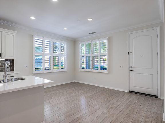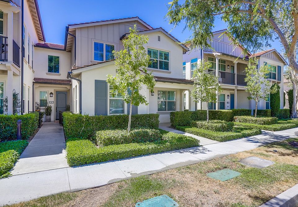 At 1,573 SF, this beautiful, open-concept condo is the largest floor plan in the Acacia community of Cypress Village. Built in 2014, this home offers 2 bedrooms, 2.5 bathrooms, and an additional den. It features upgraded floors downstairs, upgraded countertops with full backsplash, and plantation shutters throughout. Additional highlights include an upstairs laundry room, a direct-access two-car garage, and a covered front porch. This home is northeast-facing with ample natural sunlight and is ideally located near the Jeffrey Open Space Trail, which is perfect for biking, walking, and hiking. It is also conveniently located near many parks, as well as The Spectrum, The Market Place, Great Park, Retail Shops, and easy access to Freeways. Schools include Cypress Village Elementary School, Jeffery Trail Middle School, and Irvine High School. Cypress Village residents also have access to the following amenities: Olympic-size heated pools and spas, tennis courts, a clubhouse, BBQs, parks, playgrounds, and tot lots. Small pets are considered with an additional deposit and rent; refrigerator, washer, and dryer included.