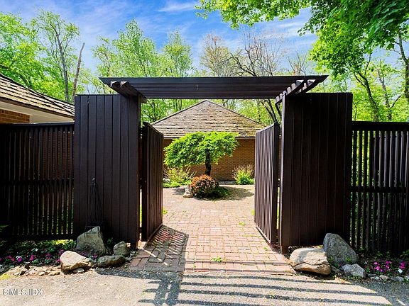 Designed by Chicago architect Dennis Blair, protege of Frank Lloyd Wright, this mid-century home is sited on 2 beautiful mid country acres on coveted Round Hill Rd. Blair's work has been praised for its beauty, simplicity, & functionality. A master of modern style, his work is still admired & celebrated today. The home features LR w/vaulted pyramid bleached cedar ceiling, FP & balcony overlooking a beautiful natural setting. Formal paneled DR w/seasonal views of a distant pond. Its mid-century kitchen w/breakfast area & sun filled family room offers a wall of glass overlooking private yard w/beautiful pool. Large 1st fl primary suite w/balcony overlooking nature, LL has 2 other en-suite bedrooms & den w/direct access to stunning mature grounds. An abundance of glass walls seamlessly bring nature into this home true to form of its mid-century design. Dennis Blair visited this home in 2003 and completed a full architectural rendering for an expansion that is available to its new owner. 140 Round Hill Road offers a serene living experience with a combination of privacy and close proximity to urban conveniences. 30 miles to New York City makes this home an attractive location for those seeking an idyllic suburban lifestyle.