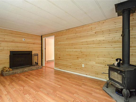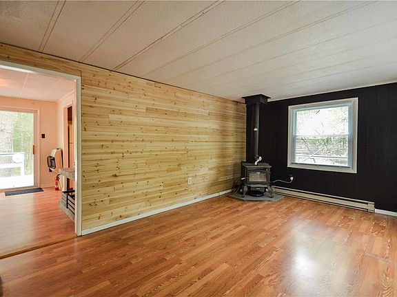 Adorable 3 bedroom ranch situated on a private and wooded setting; perfect for a short weekend getaway or year round living! Features include a sun-filled living room with wood stove and fireplace, wooden accent walls and a large bay window. Open kitchen and dining room that opens to an expansive wrap around deck. Down the halls sits 3 bedrooms with Parquet wood floors, and a beautiful updated bathroom with a large tiled shower. The full basement is partially finished with vinyl plank flooring and is a fantastic space for a rec area! Additionally, there is ample storage, and a laundry area. Pocono Mountain Lake Estates offer great recreation activities such as a beach, lake, pavilion, clubhouse, indoor & outdoor pool, tennis and more! Call today or your private showing!