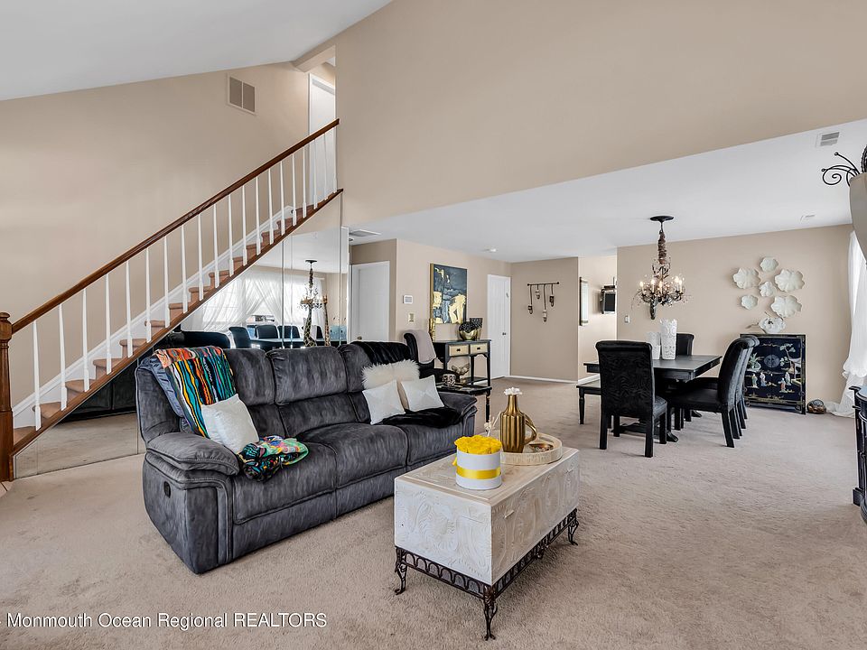 Hurry! This won't last, this end unit Ashford Model in South Field Estates, is located on a cul-de-sac, and is one of the bigger units. Walk into an open concept living room/dining room, with high ceilings and a wood burning fireplace. The eat in kitchen has large center island, garbage disposal and high vaulted ceilings. Lots of natural sun light with sliding doors that open to your private deck. The spacious master bedroom is located on the first floor with your own private ensuite. The master bath has a soaking tub and a walk in shower with a double vanity. First floor laundry room for added convenience. Upstairs you have 2 bedrooms and another full bathroom. Seller has underground sprinkler system. Easy access to route 9, restaurants, commuting, shopping and The Jersey Shore!
