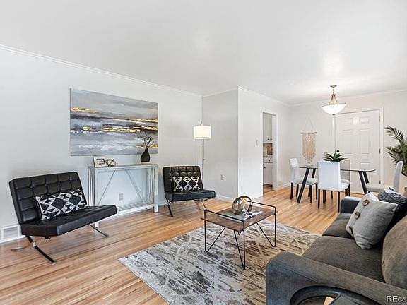 Beautifully maintained and energy-efficient, this 3-bed, 2-bath brick home is move-in ready! Featuring an extra-large 1-car attached garage and a wonderful covered back patio overlooking the professionally landscaped yard, it offers the perfect blend of functionality and charm. Freshly painted interiors showcase the classic floorplan and ease of one-level living. Updates abound, including gorgeous refinished original hardwood floors, air conditioning, whole house fan and newer evaporative cooler, upgraded windows, roof, soffits, and gutters (2017). A full energy audit with upgrades in 2023 included additional insulation, fully encapsulated crawlspace, new hot water heater, and an upgraded electrical panel (2024) and more. The eat-in kitchen, bright laundry room, updated bathrooms, privacy fence surrounding the beautiful backyard with raised garden bed, drip irrigation, storage shed, expanded concrete pad and walkway, leafless gutters and an extra-wide and tall garage door further enhance the convenience of this fantastic home. The spectacular location is within walking distance of O'Kane Park and Belmar, with all of its services, shopping, dining and nightlife, is just 2 miles away. Of course, Lakewood is known for easy commutes with easy access to 6th Avenue, zipping up to the mountains or into Denver is a breeze. Call for a private showing – this one won't last long!