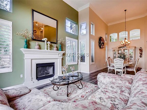 Welcome to this beautifully maintained family home in the elite Summerlin gated community of Talon Pointe. This loving home gives you vaulted ceilings with crown molding, a spectacular staircase with wrought iron railings, new flooring and paint, and a welcoming kitchen and family room for entertaining. Enjoy a wonderful backyard oasis with a beautiful pool/spa, fruit trees, covered patio, and a putting green, all on an oversized culdesac lot.