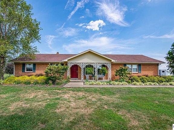 What everyone wants...a lovely home sitting on almost 5 acres, with horse facilities, less than 15 minutes from town, right? This property checks all those boxes and more! This beautiful, meticulously designed brick home will greet you at the front porch with custom railing by local wrought ironworks artisan John Mills, of John Mills Ornamental Iron Works. It was fashioned in the scrolled baluster design. It emulates qualities in common with New Orleans supportive filigree style railings and panel. As you enter the home, you will find architectural detail, and a polished finish in the living room, dining room and through the home with custom designed, crisp, white crown molding. The kitchen boasts custom cabinetry by local cabinetry designer Walters Cabinets. It also features elegant granite countertops! This home has a 13'X23' primary suite, mostly finished basement, fireplace, scenic screened porch, breathtaking landscaping and 2 car garage w/automatic openers. This property also features a picturesque red metal barn with 4 horse stalls...one being a foaling stall. Each stall has rubber matting for equine comfort. The barn has a COVERED RIDING RING, tack room, Run-In shed, chicken coop and equipment storage area. The riding ring was specifically designed with large, medium and fine grade rock with a compressed clay surface. This one of a kind property has black rail horse fencing, high tensile fencing and automatic watering system. Some may call it a Hobby Farm, you better call it yours, Quickly!